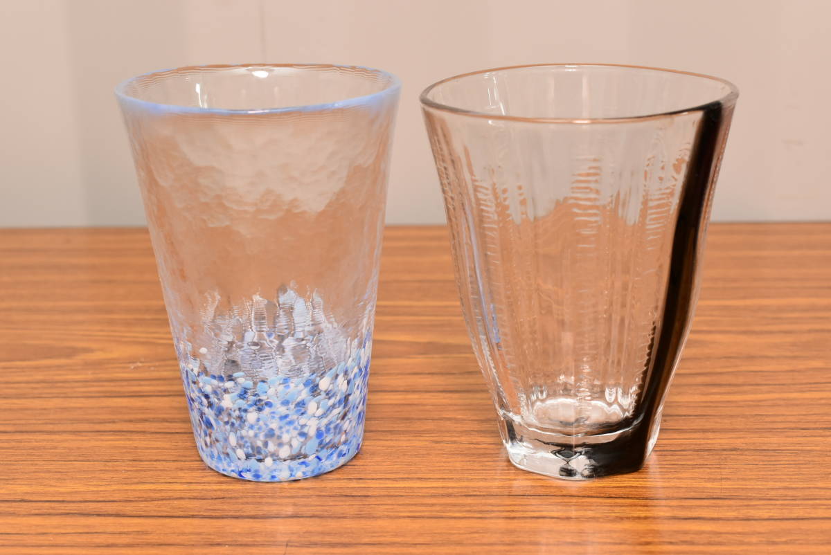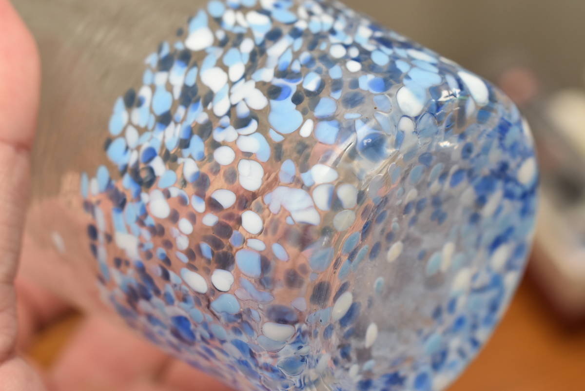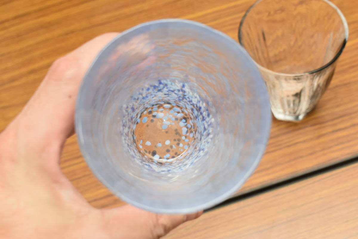 青いグラスのサイズは高さ12cm、横幅8.7cm、位です。