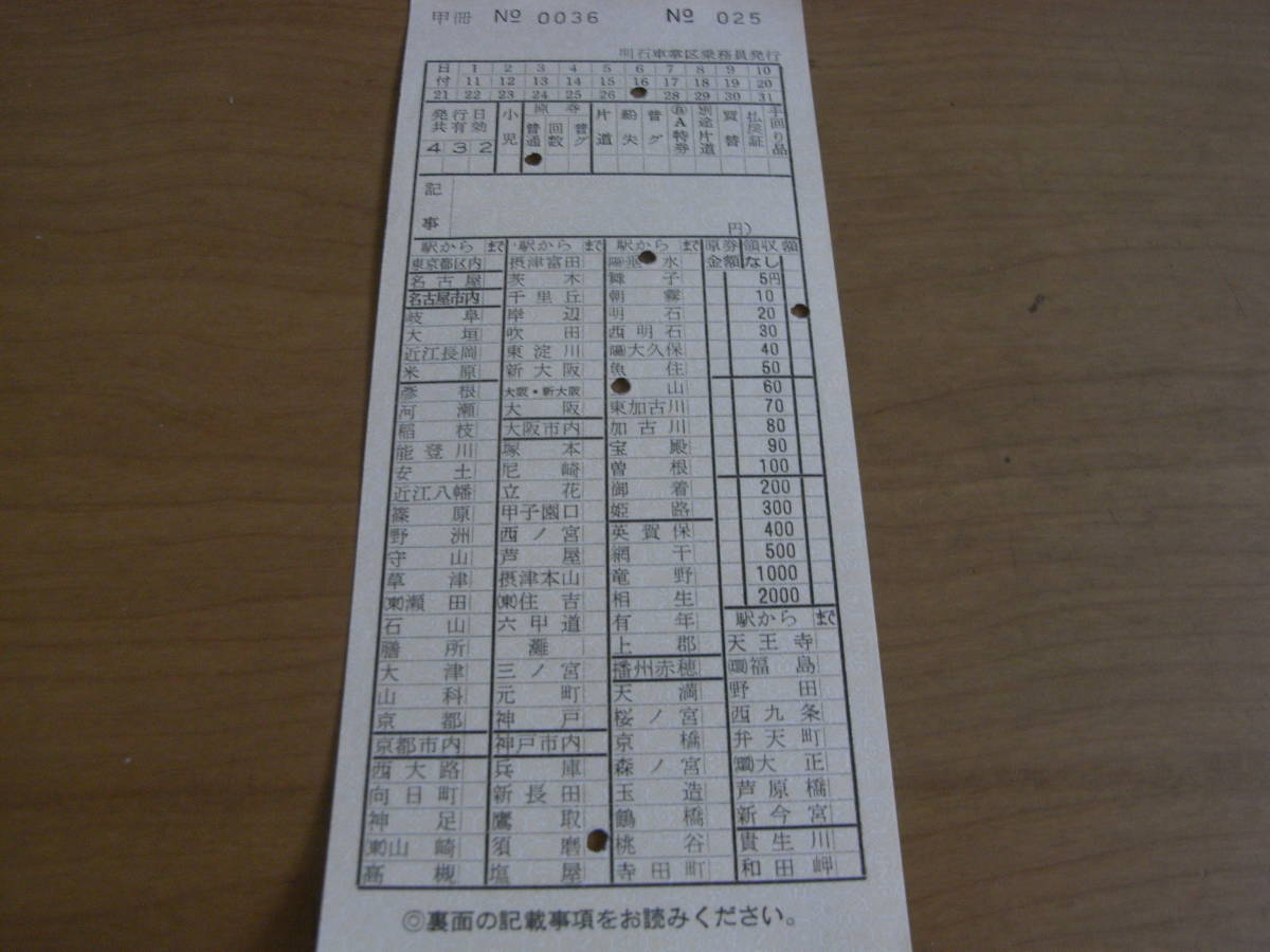 国鉄 車内補充券 明石車掌区乗務員発行 0036-025
