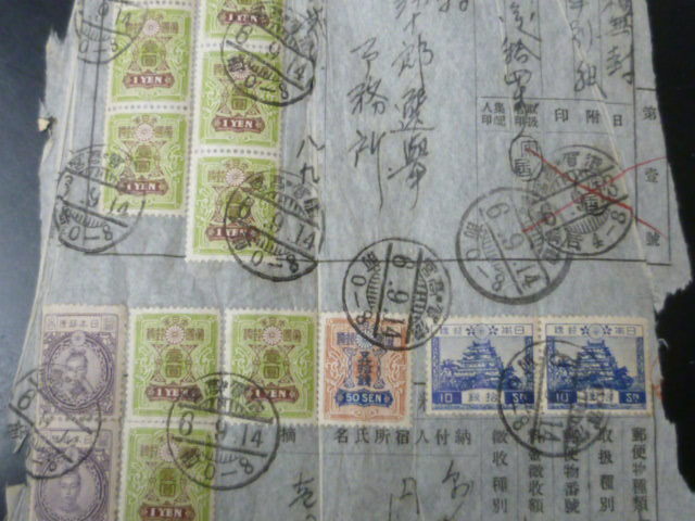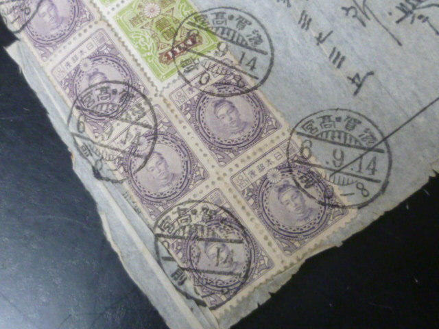 21EA S №11 電話加入書 新大正毛紙貼 1円 12枚・5円 8枚・他 消印「滋賀、高宮、14.9.6」