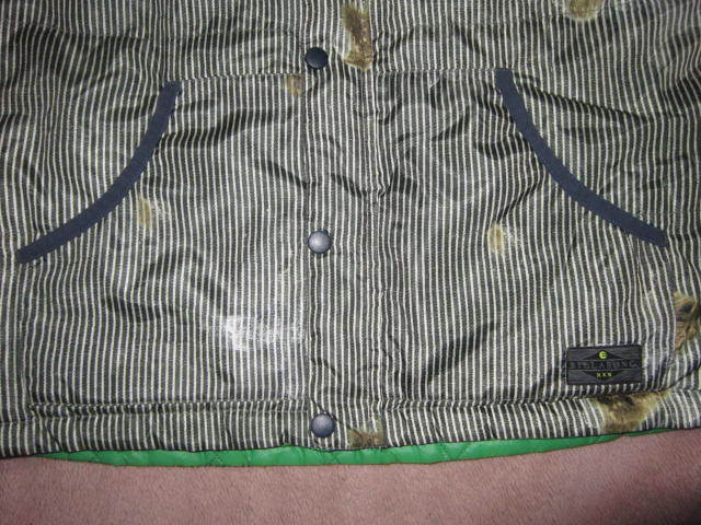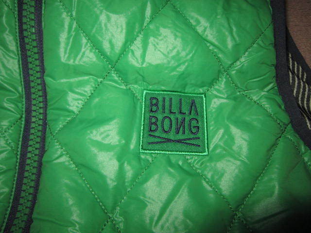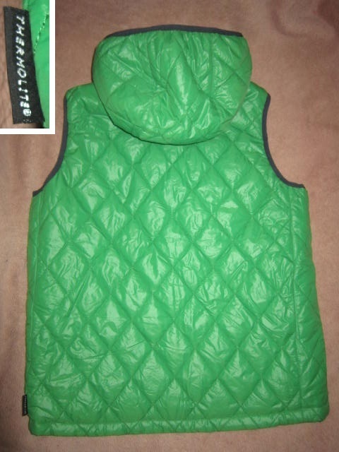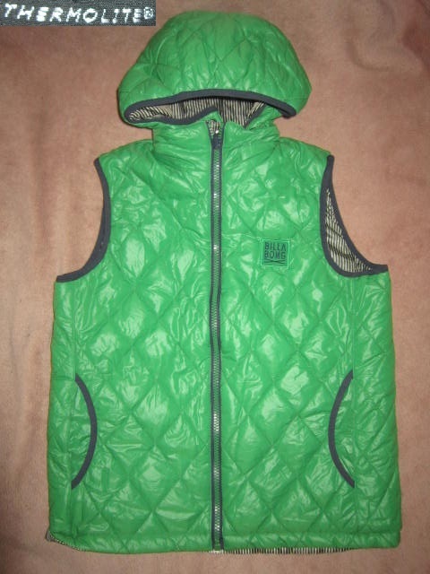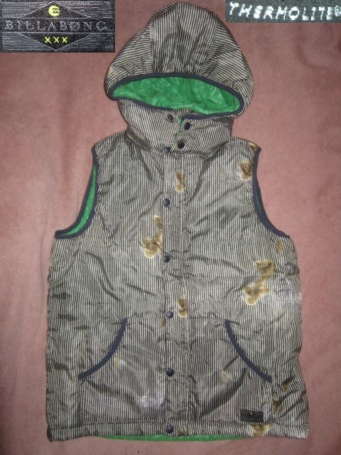 超レア!激安 即決! BILLABONG THERMOLITE ビラボン ヒッコリーデニム転写 ダメージ転写 リバーシブル キルティング フード中綿ベスト L