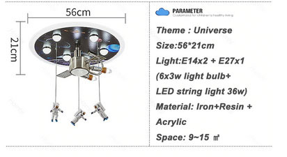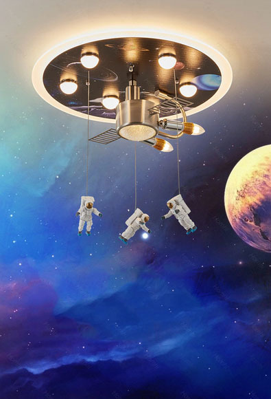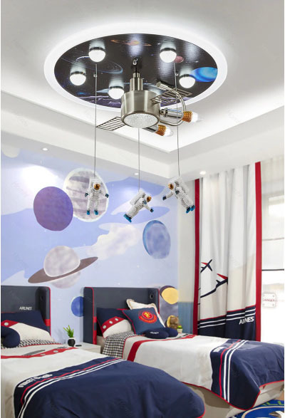 宇宙飛行士シャンデリア宇宙ルーム光沢インテリア寝室ライト