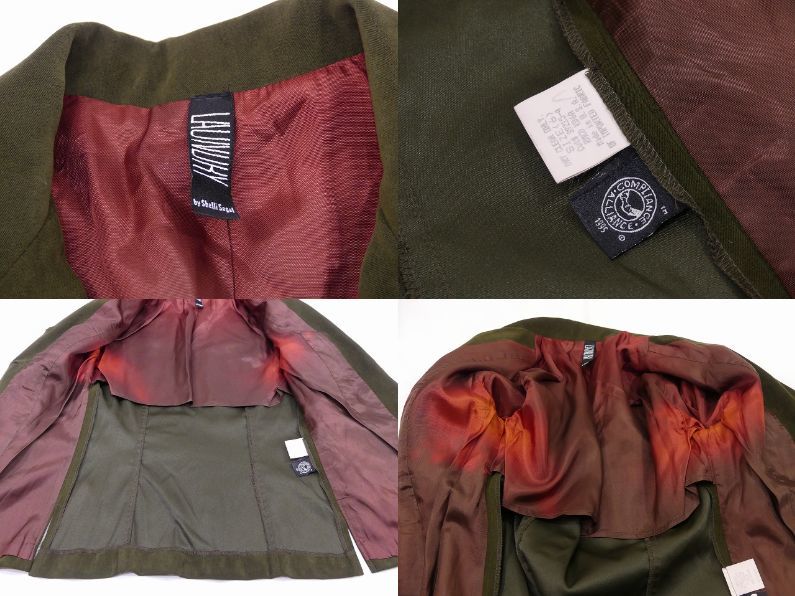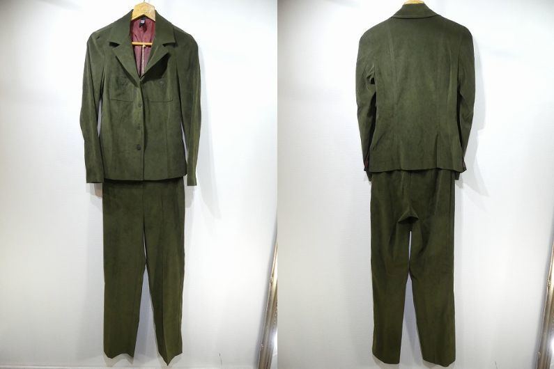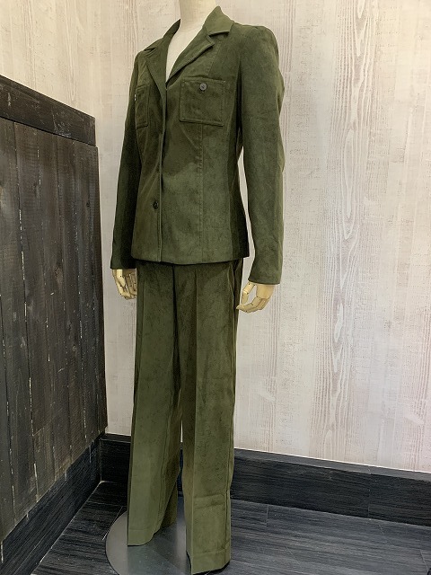 | こちらは、90年代頃のアメリカ製 LAUNDRYフェイクスエード 2ピース スーツ セットです。 トップスはシャツジャケットタイプでボックスタイプの裾やスリットが大人っぽいデザインです。 パンツはノータックでシルエットがとても綺麗です。また、軽い着心地のフェイクスエード生地は肌触り良く、高級感もあります。合わせやすいカーキカラーで、上下別々にもコーディネート出来るので便利です。上品なカジュアルセットアップはお勧めです。 ※こちらはセット売りで、単品ではお売りは致しておりません。 コンディションは多少の使用感があり、ライナーにフェードが見られますが、ダメージも無く良好です。 素材 表地 ポリエステル×スパンデックス 裏地アセテート サイズ 6(着用感S-M位) シャツ 肩幅38cm 身幅86cm 袖丈60.5cm 着丈60.5cm(背中心) パンツ ウエスト約68cm ヒップ約86cm 股上24cm 股下80cm 総丈104cm 裾幅21cm 撮影用BODYサイズ 肩幅37cm バスト82cm ウエスト60cm ヒップ86cm 素人採寸の為、多少の誤差はご了承ください。 | |||