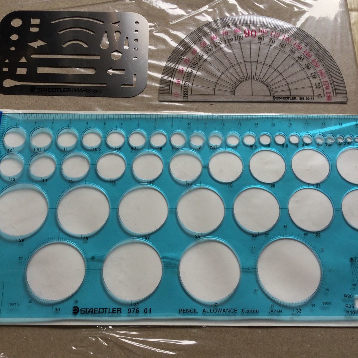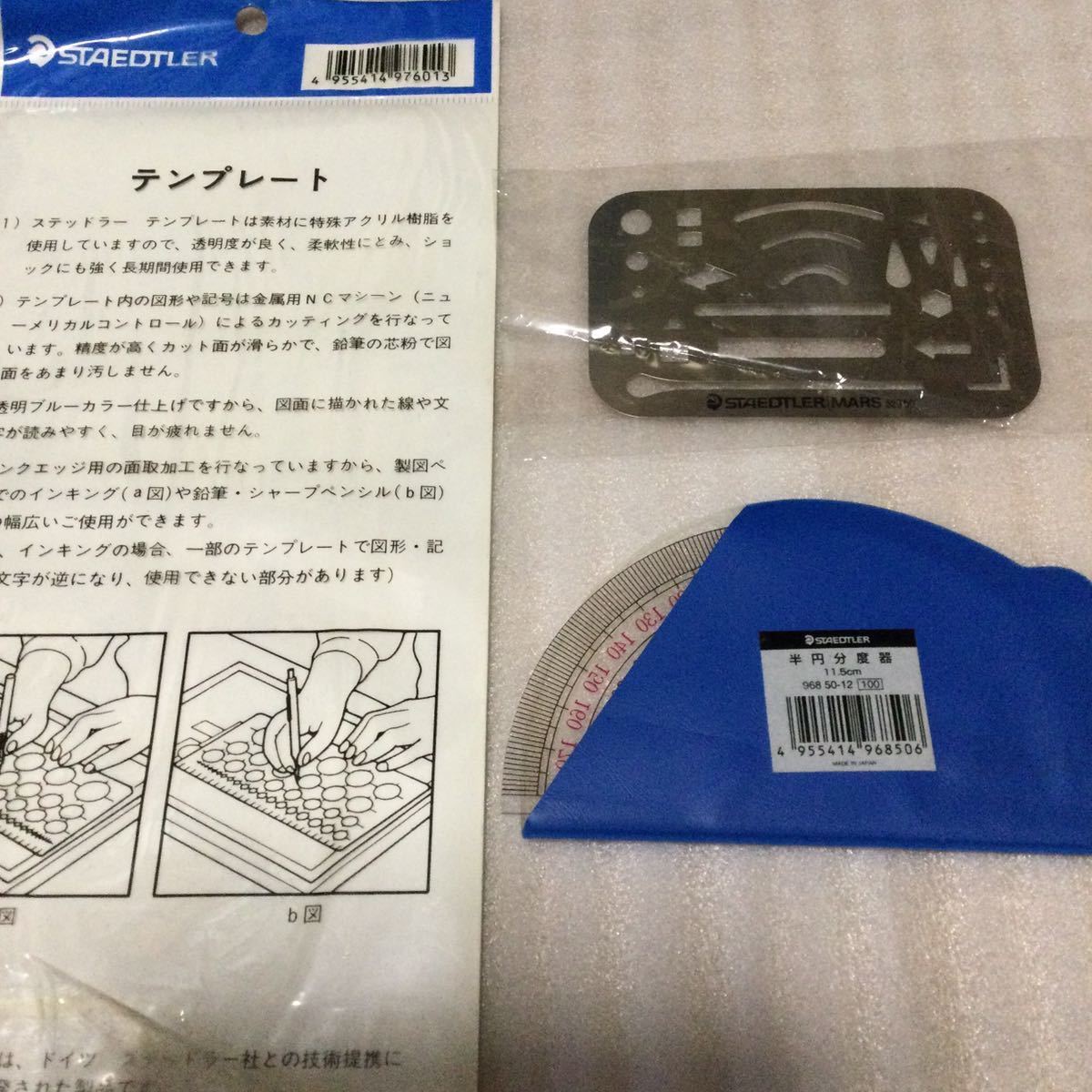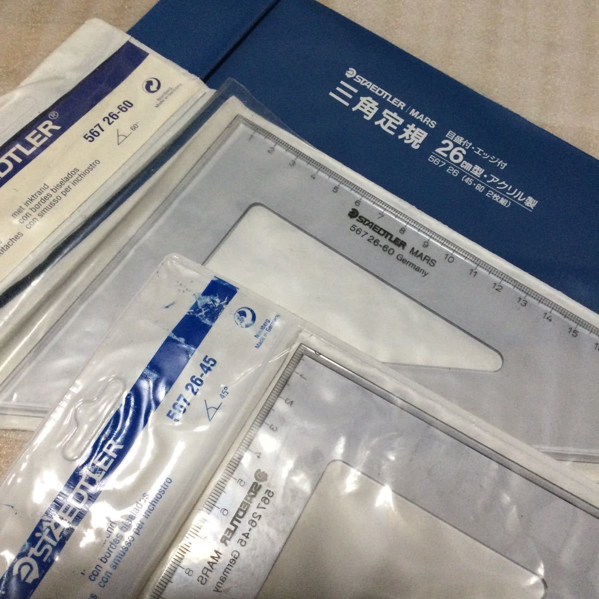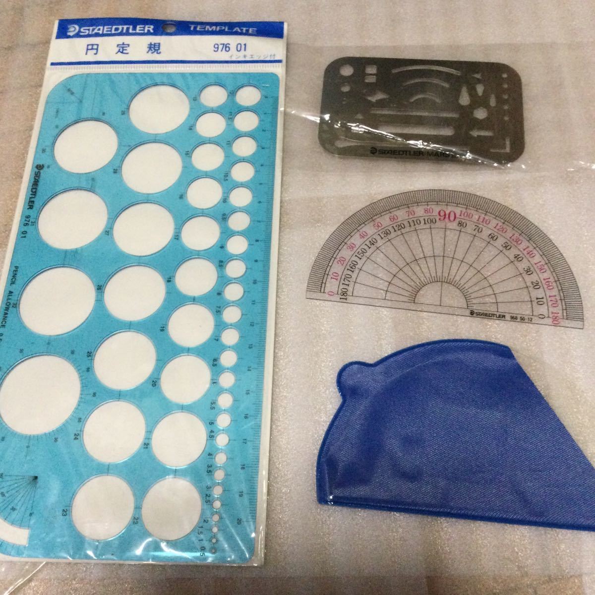三角定規など未使用ですが外装の袋に文字のハゲや袋の角に破れがあります