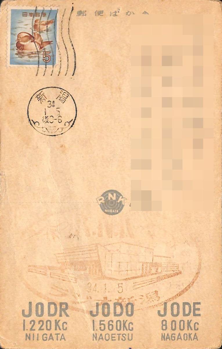 ①BCL★激レア★希少ベリカード★JODR★RNK★ラジオ新潟★新潟放送★新潟県★昭和34年