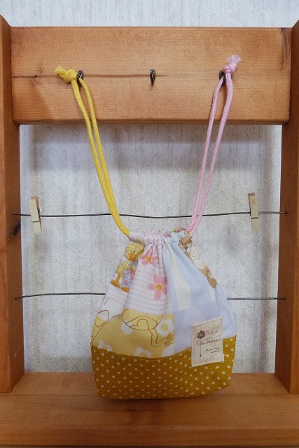 子供さんのコップ袋などに。。。 小さめの巾着袋です。。 ☆サイズ:15×12cm まち3cm 両ひもタイプです。 ☆カラー:イエロー系(キャラクター柄) *ひとつずつ丁寧に作りましたが、あくまでも素人の手作りです。多少のゆがみ等、細かい事を気になさる方や完璧を求められる方の入札はご遠慮下さい。*不明な点は出来る限りお答えしますので、質問欄からお願いします。*梱包資材は、基本的に家にある物を使っています。リサイクル梱包にご理解ください。 |