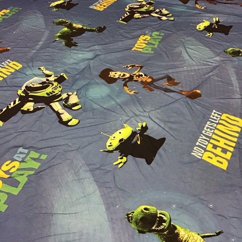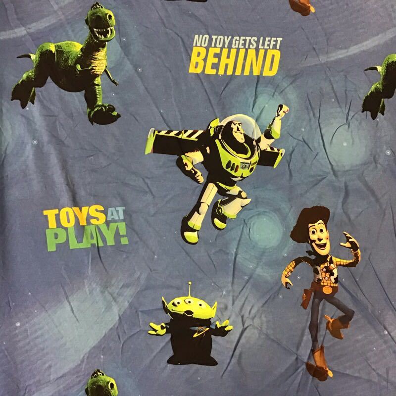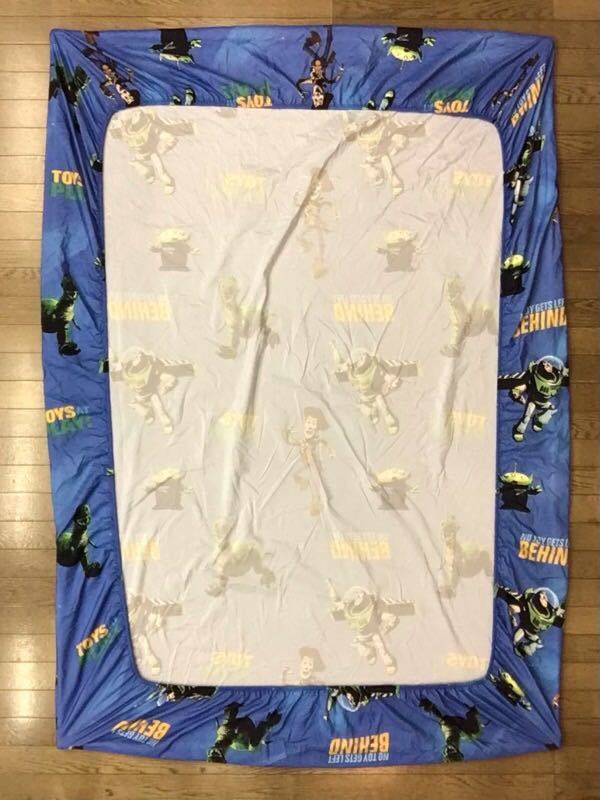 【n041】ヴィンテージシーツ フィットシーツ 全周ゴム 190×135 キャラクター トイストーリー リメイク用生地 アメリカ買付 布 送料無料