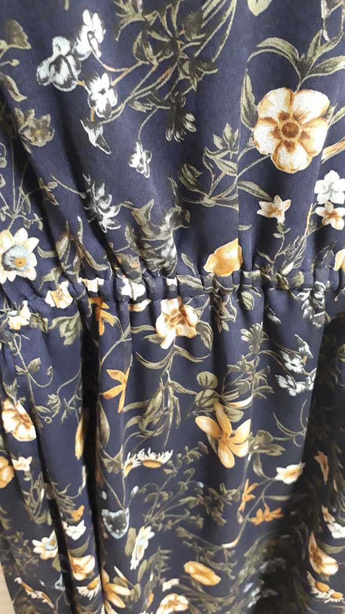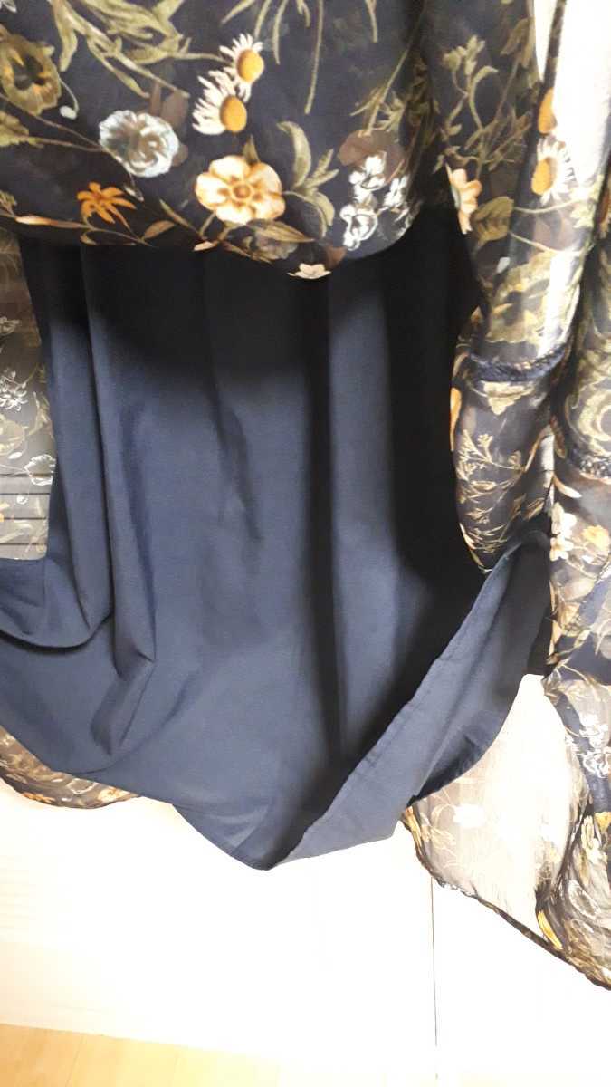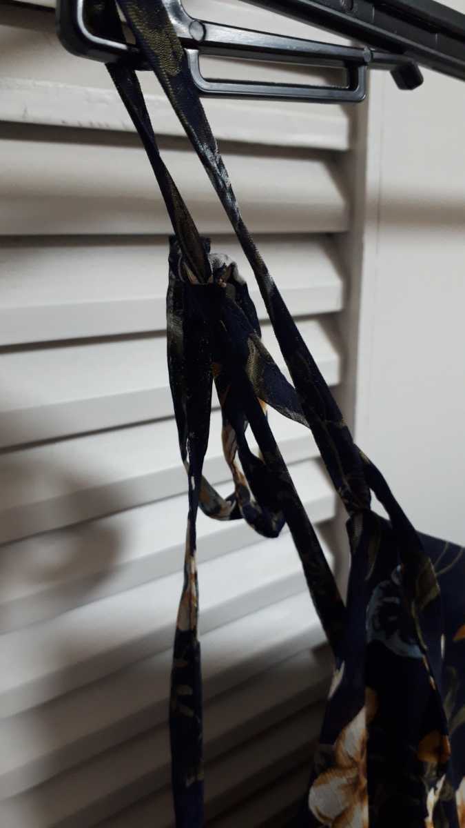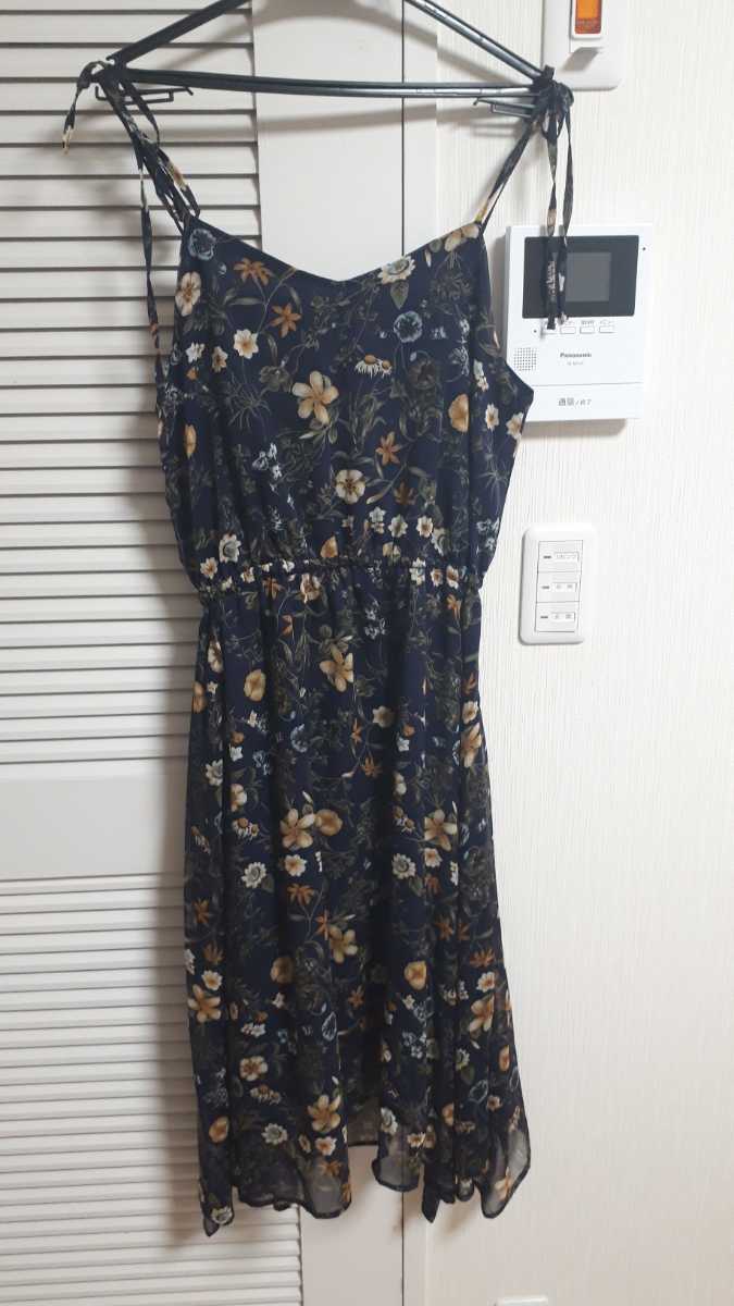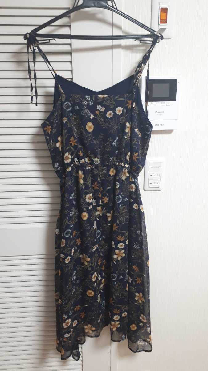 ネイビー地に黄色の花柄がポイントになったワンピースです。