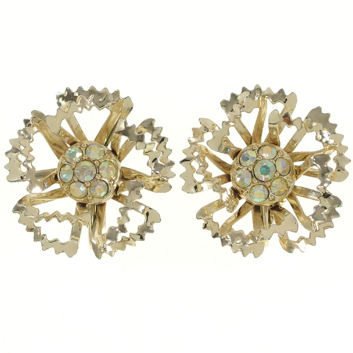 A6712◆【SARAH COVENTRY】◆ 1970s ALLUSION ◆ オーロララインストーン フラワーモチーフ ◆ ヴィンテージイヤリング ◆