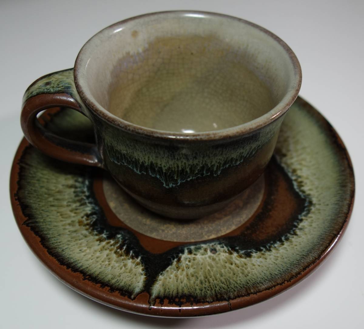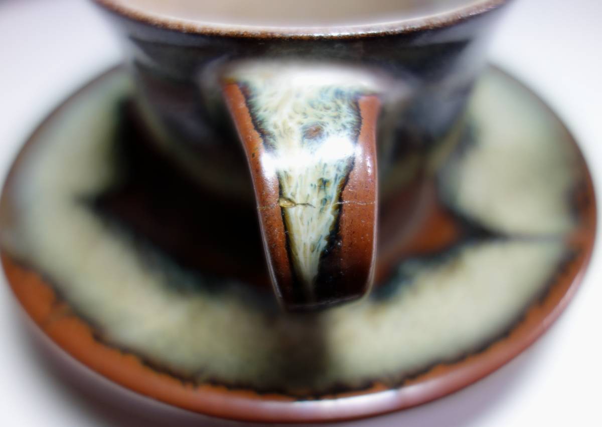 昭和民芸運動期 海鼠 コーヒーカップ&ソーサー 金継教室用サンプル 希少手