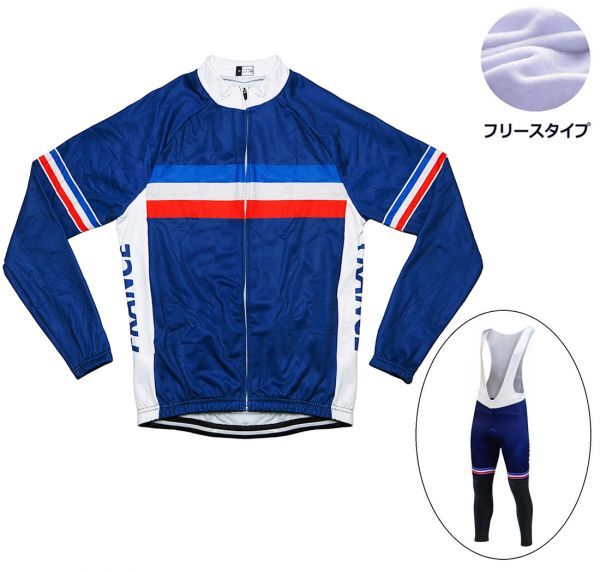 新品 長袖 裏起毛 上下セット No64 Sサイズ フランス サイクルジャージ ウェア メンズ サイクリング MTB ロードバイク 自転車 フリース