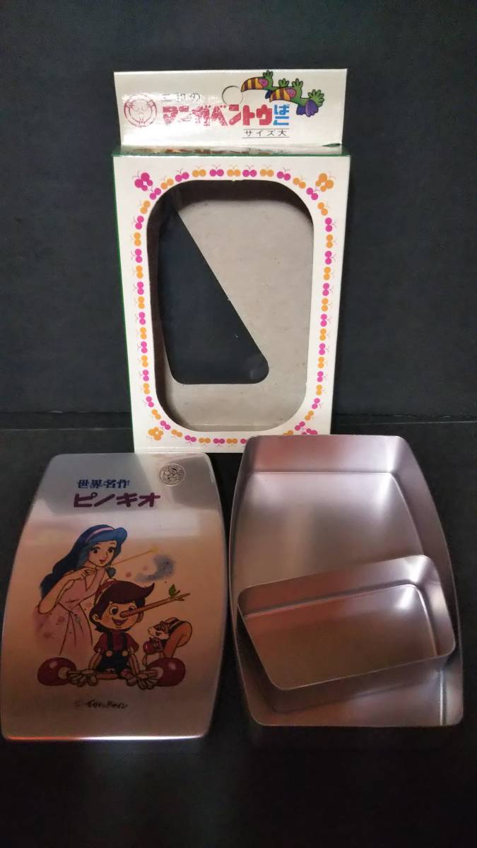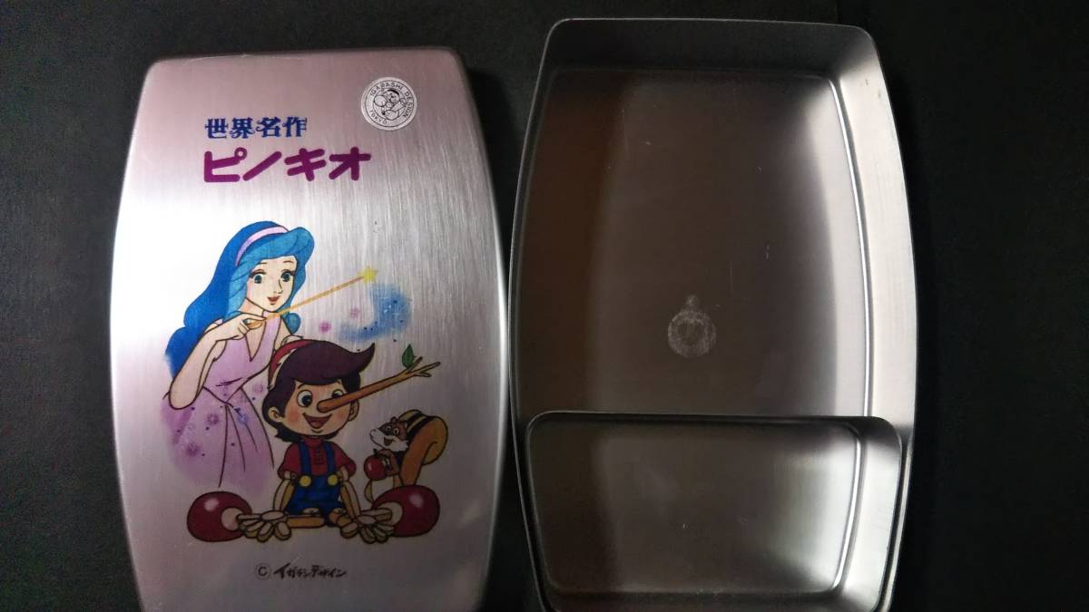昭和レトロ・ 世界名作 ピノキオ ・アルミ 弁当箱 大・ 未使用 ・アンティーク・イガラシデザイン