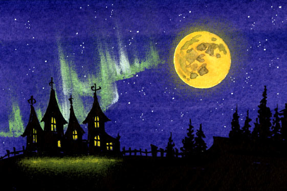 第7446号「ハロウィンの満月」/田中千尋(四季水彩)画