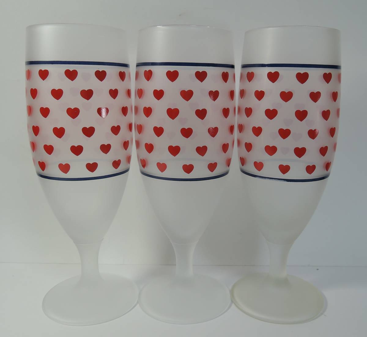 ☆25H 昭和レトロ■ハートがいっぱい すりガラス ジュースグラス 3個■未使用