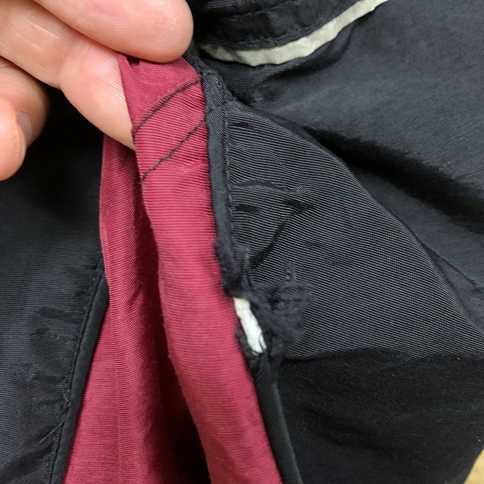 | 商品状態・ディテールなど | (※実測寸法など、多少の誤差はご容赦下さい。) (※商品は全て畳んで保管しております。保管による畳み皺などはございます。その点ご了承下さい。) ・ダメージ:褪せ、両袖の裏地の袖口部分が半分ほどステッチから外れている状態、所々白インク汚れのような箇所 ・ディテール:- |