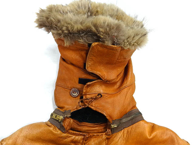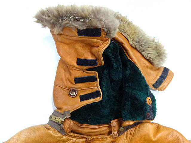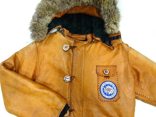 ビンテージ 希少 ハンドメイド 70S レザー N3B デザイン フード ジャケット コート タロン USARP 南極 ワッペン 革 ヌメ レア 珍品 ボア 茶