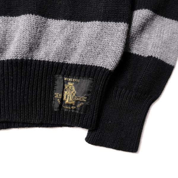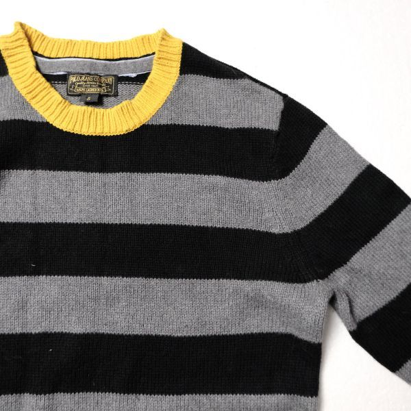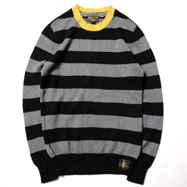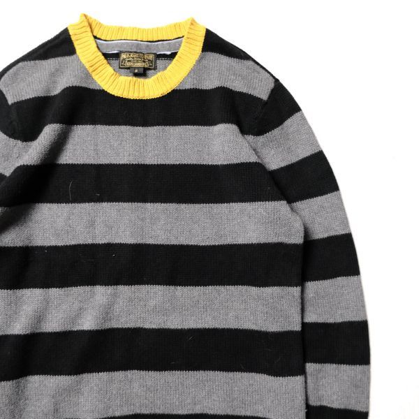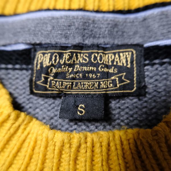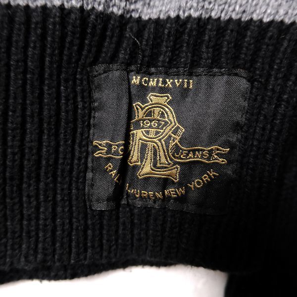 90's 00's ラルフローレン ポロジーンズ 太ボーダー コットン ニット セーター (S) 黒×灰×黄色 90年代 旧タグ オールド POLO LADYS