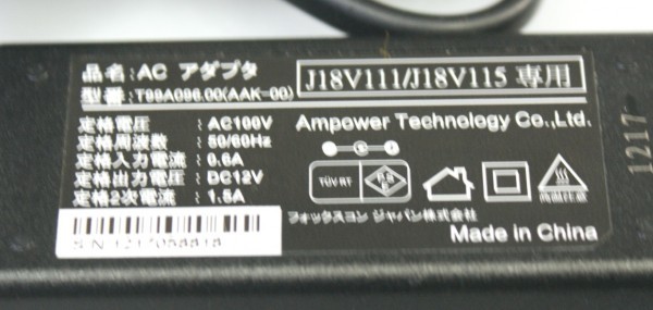 !!!!!! (送料無料)フォックスコン ACアダプター T99A096.00 (AAK-00 )DC12V 1.5A    動作OK