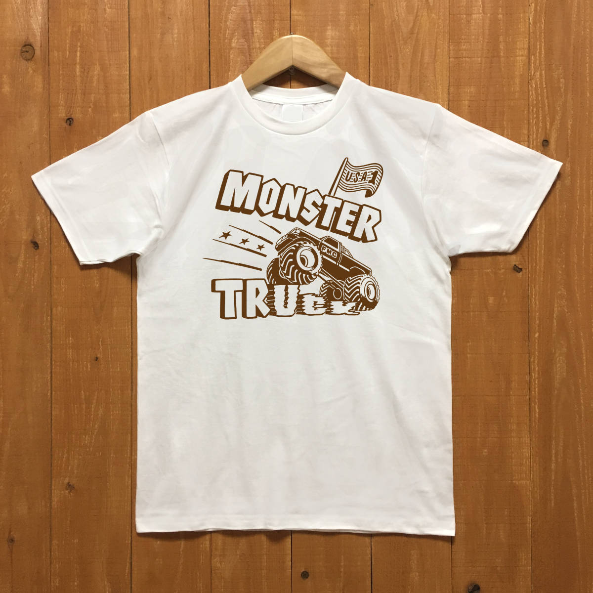 ■ MONSTER TRUCK Tシャツ■Mサイズ(ホワイトxブラウン)FORD フォード