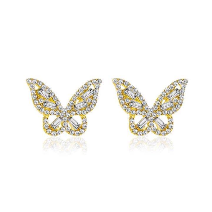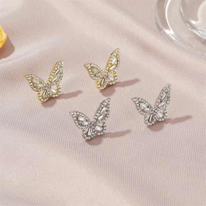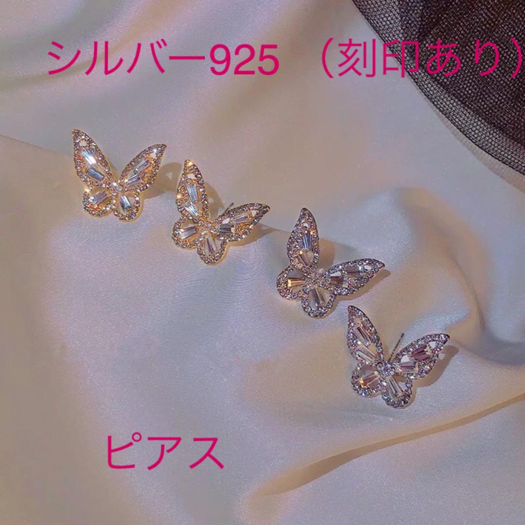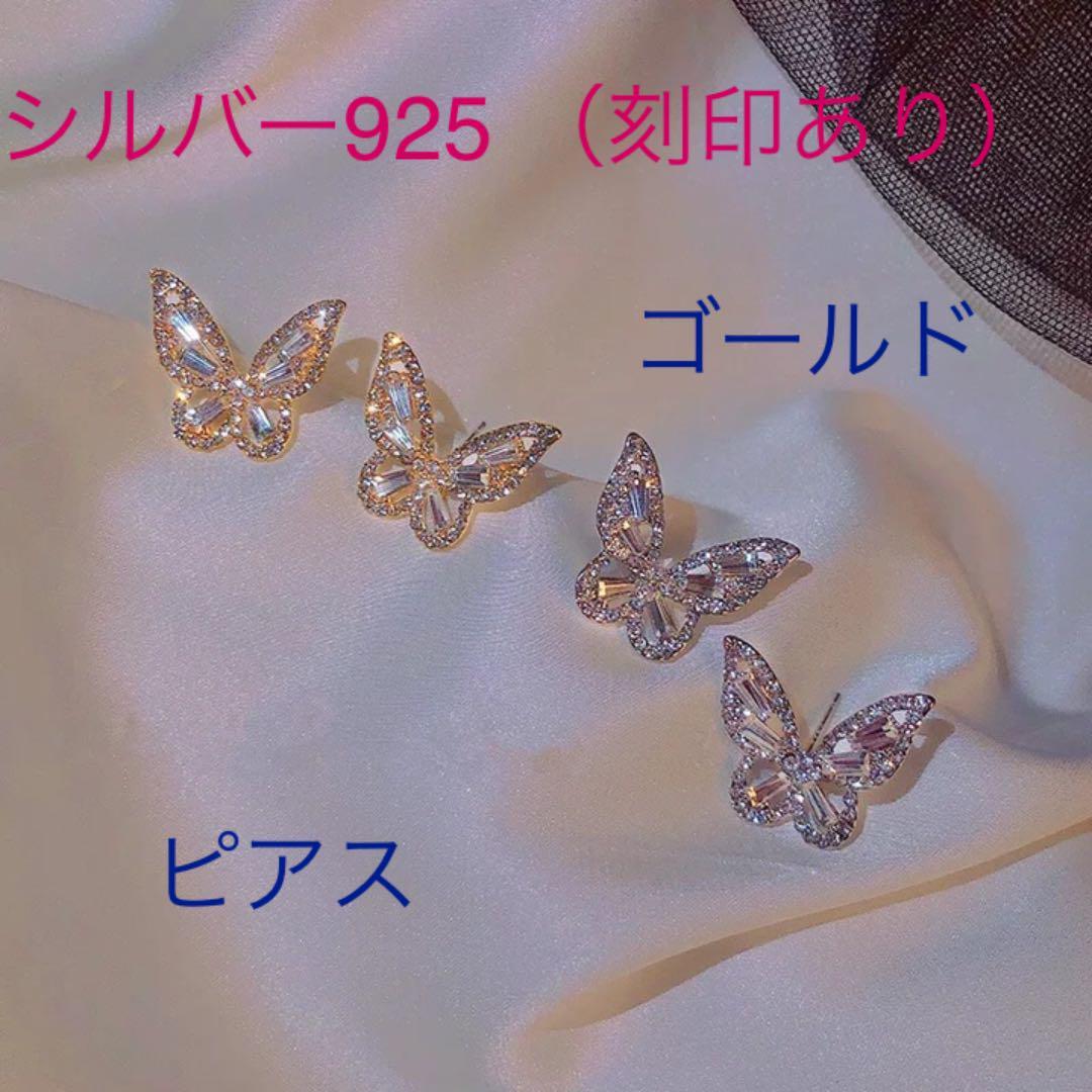 (PF)ゴールドカラー シルバー925(刻印あり) 豪蝶々ピアス (蝶々の指輪とブレスレットもあります) スワロフスキー製クリスタル使用