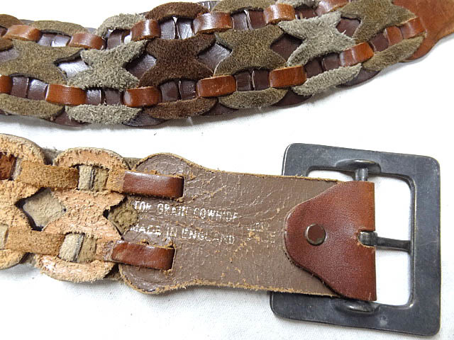 ヴィンテージでイギリス製のベルトというのは滅多に見かけることのない珍品です。ベルト自体のデザインもレザーとスエードのコンビで編み込まれた探してもまず見かけることのないデザインです