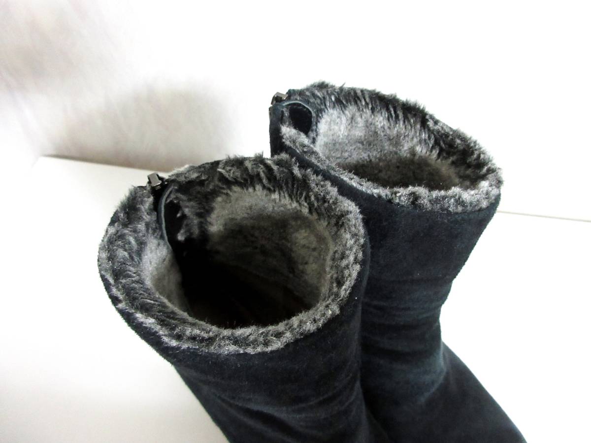 カリーノ carino スエード レザー ショートブーツ 黒 ブラック 22.5 北2329