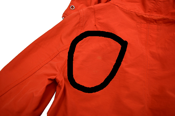 後ろ左肩下辺りにうっすらシミが見られますがよく見ないとわからず、首周り内側や両袖口にうっすら汚れが見られますが、こちらもあまり目立たずまだまだご活躍いただけるかと思います。