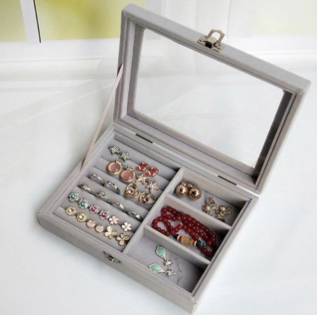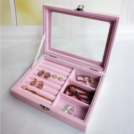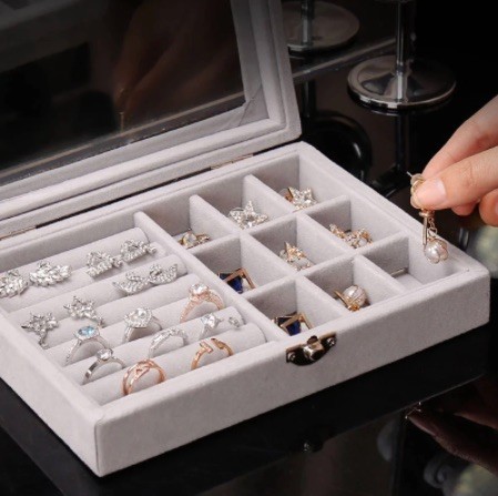 ポータブルベルベットジュエリーリングディスプレイオーガナイザーボックストレイホルダーイヤリングジュエリー収納ケースショーケース