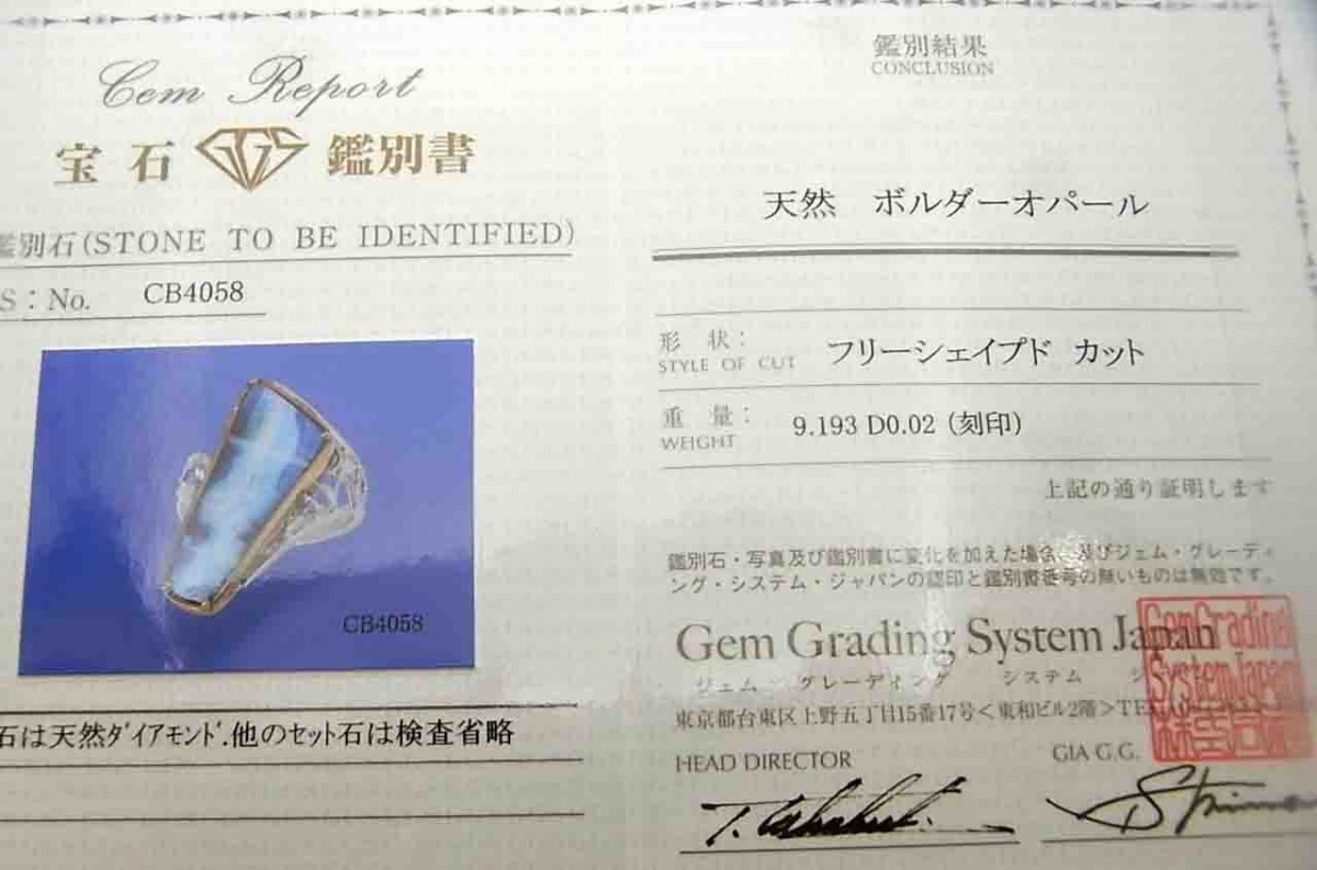 | ・サイズ | 15号/13.1g/ボルダーオパール9.193ct/ダイヤモンド0.02ct/他の石はカラット表記なし |