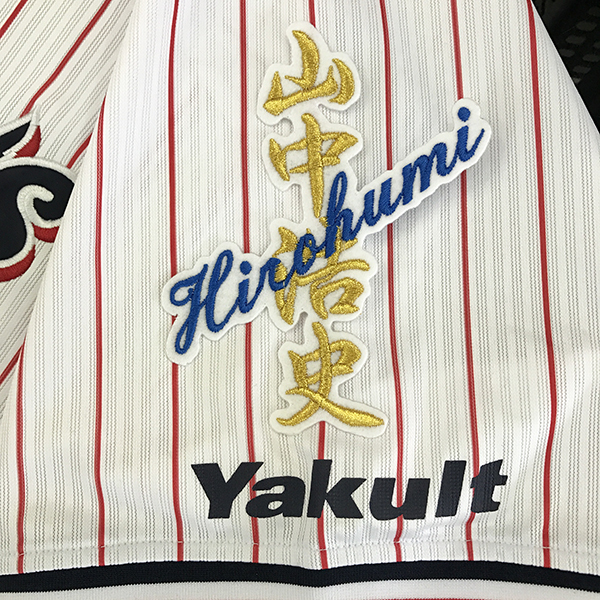 | 商品説明 | 東京 ヤクルト スワローズ 山中浩史選手のネーム、アイロン接着用刺繍ワッペンの出品です。 アイロンにて簡単に接着可能♪♪ ※写真のユニフォーム等、他の装飾品はついておりません。 |