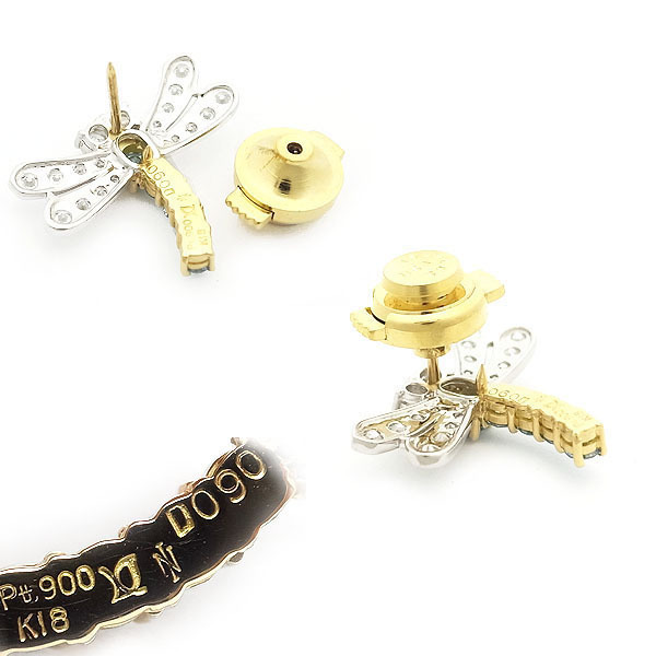 【緑屋質屋】石川暢子 ダイヤ ピンブローチ ドラゴンフライ(トンボ) K18YG/Pt900【中古】