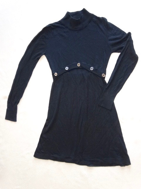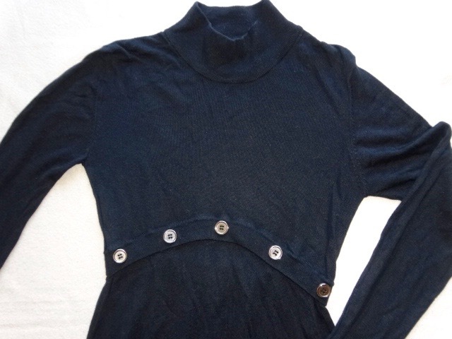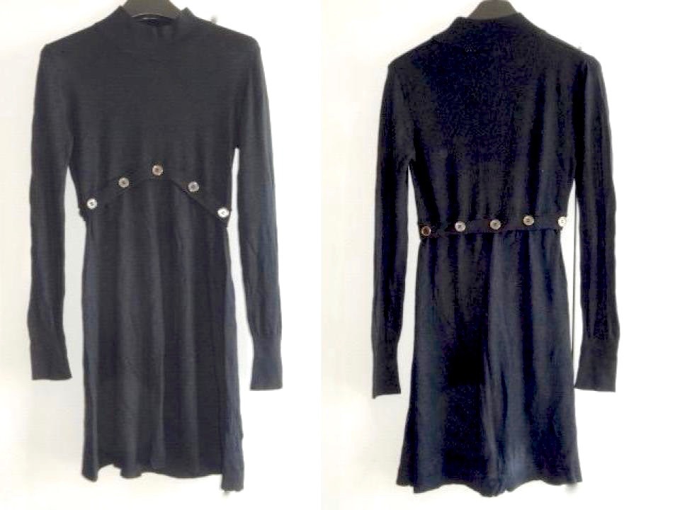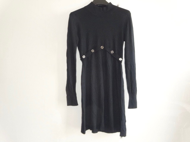 ● ASSUILI ブラック 黒 ワンピース T1 S M ボタン 膝丈 長袖 切り替え