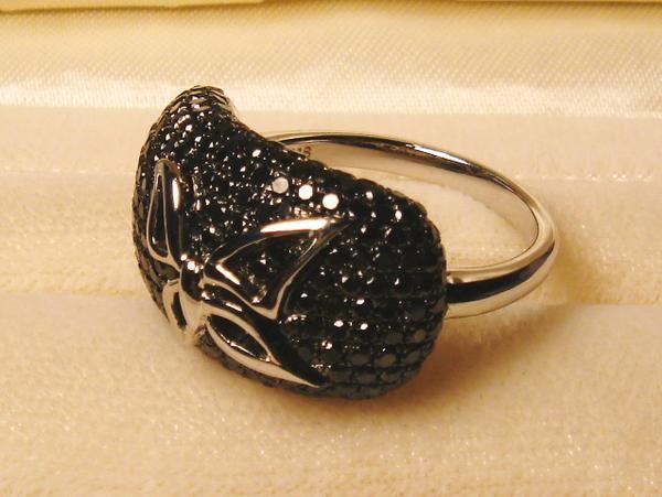 シックで高級感あふれるユニークな黒ダイヤリングです。