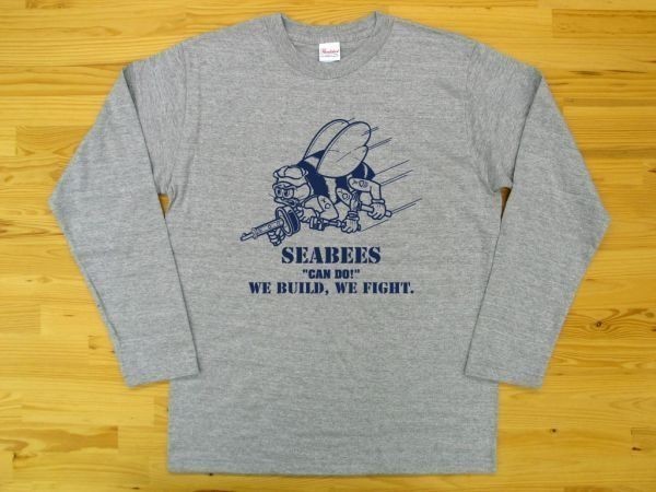 SEABEES 杢グレー 5.6oz 長袖Tシャツ 紺 L ミリタリー シービーズ U.S. NAVY ハチ