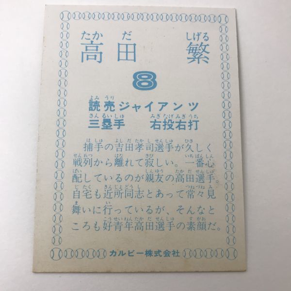 1978年 カルビー プロ野球カード 巨人 高田繁 78年   【管理NO:202-19】