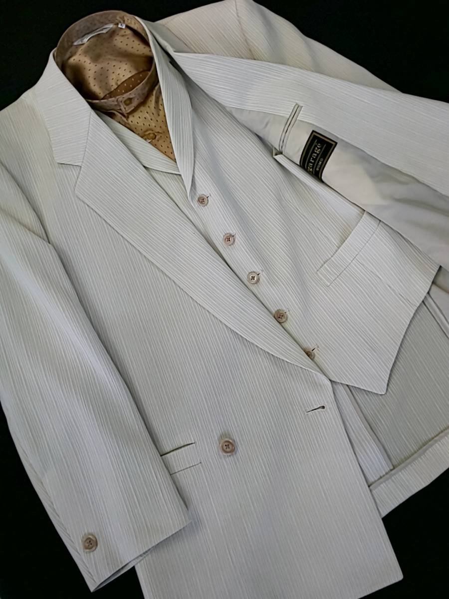 新品 SALE!! 特別価格!! 送料無料 l'garage Wスーツ スリーピース スリータック Mサイズ ゆったり パーティー 結婚式 ステージ衣装 6817-1