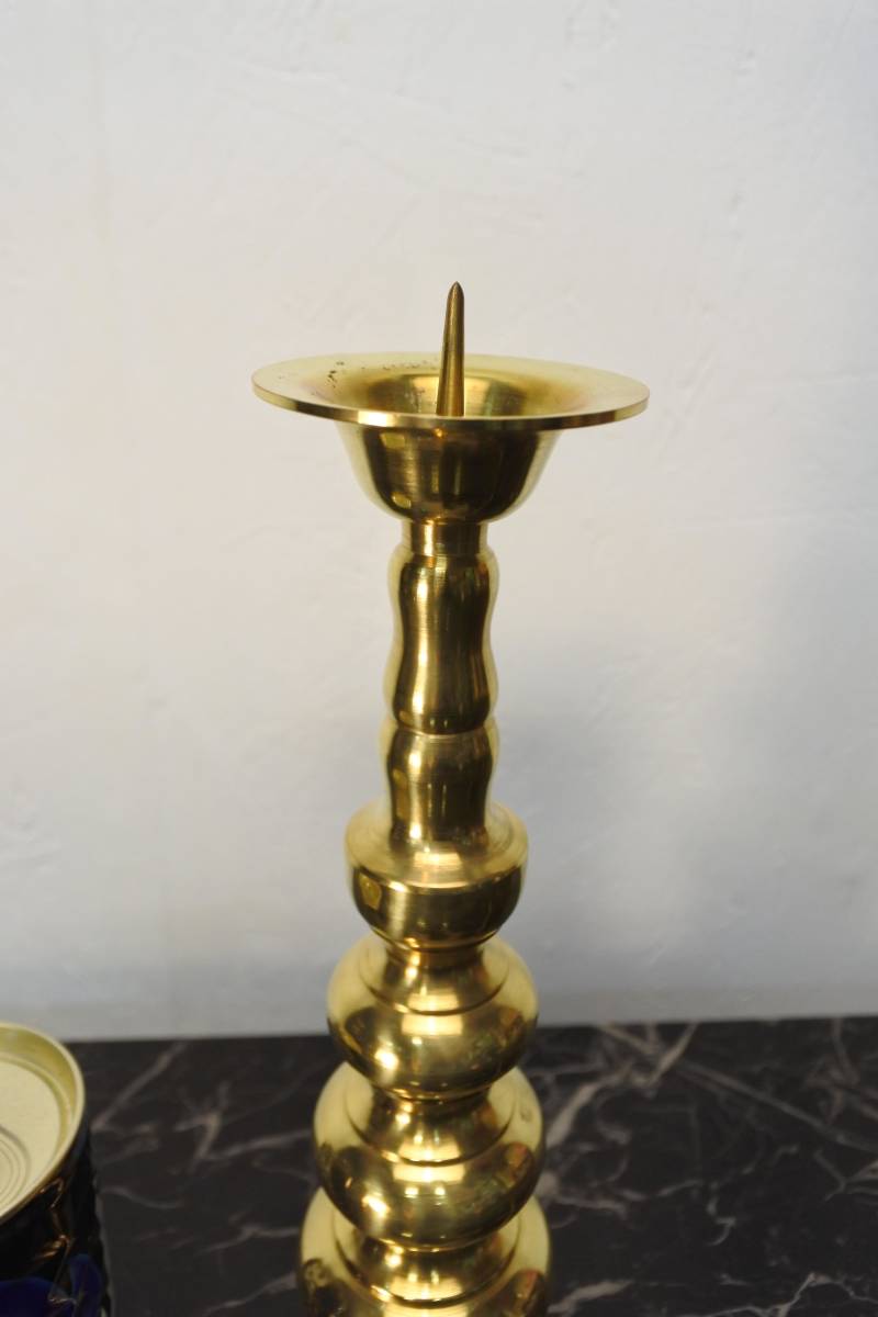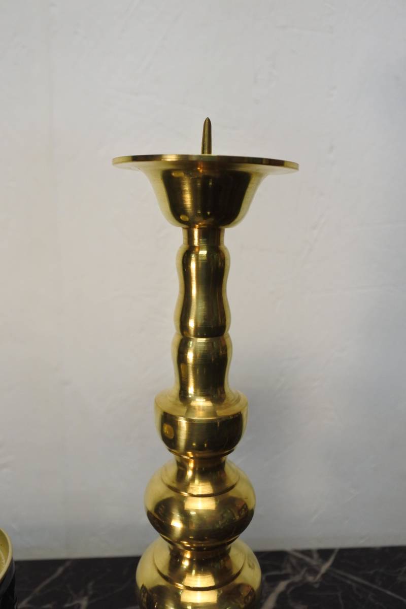 特価 長期保管品 未使用 真鍮磨き背短火立 7.5号 仏具 高さ24㎝(210303エ2)1558 ⑲ M
