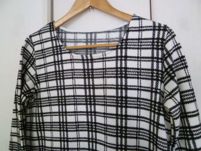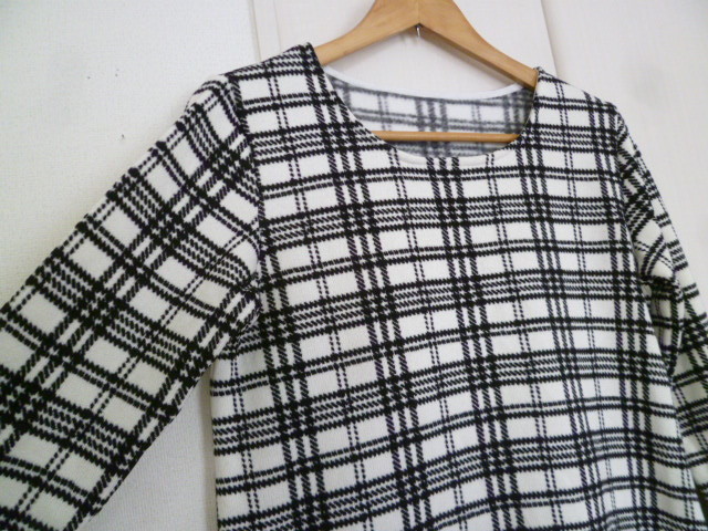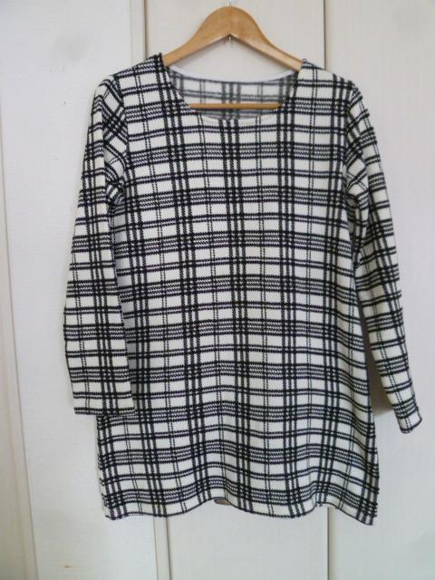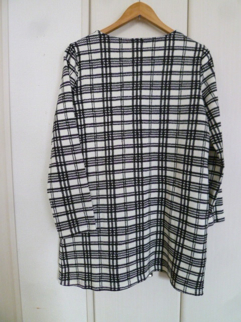 provador○白×黒千鳥格子柄裏起毛チュニックワンピースL/ホワイトブラック暖かポカポカぽかぽかロング丈トップス○116