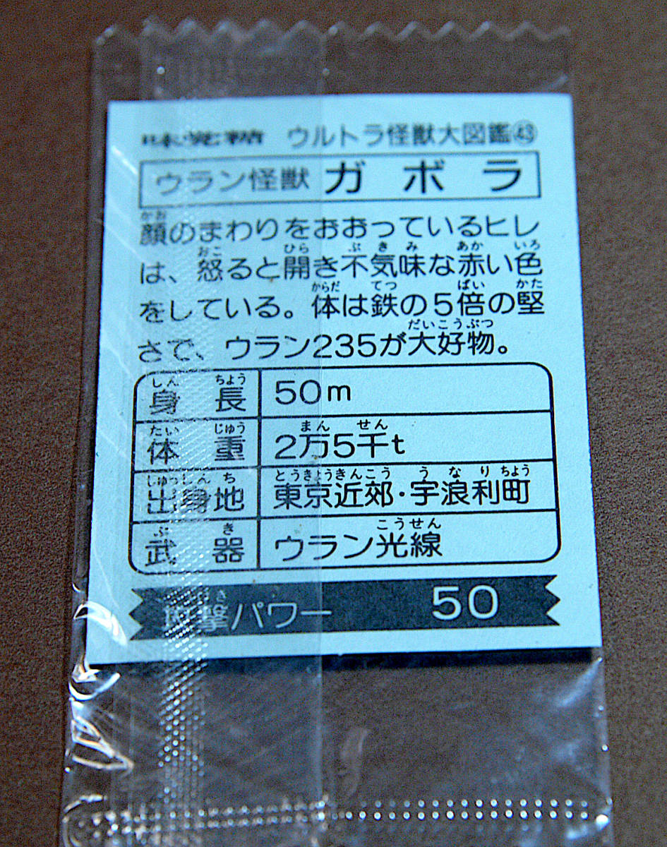 レトロ・味覚糖・ウルトラ怪獣大図鑑・「ウラン怪獣ガボラ」