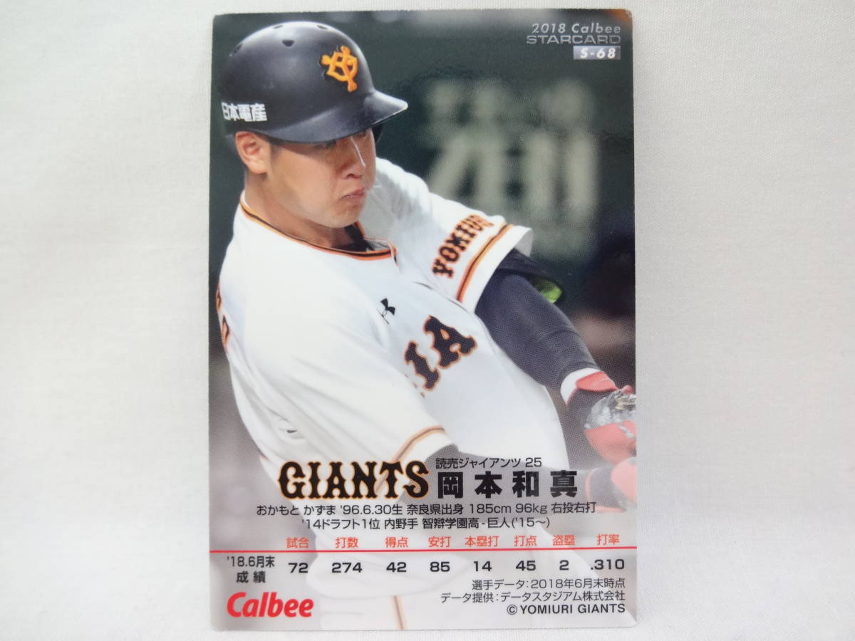カルビー 2018 STAR CARD ゴールドサインパラレル S-68 読売ジャイアンツ 25 岡本 和真です。