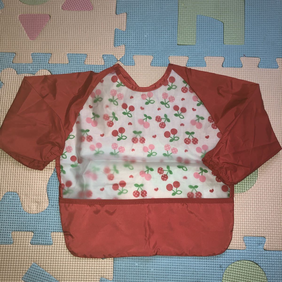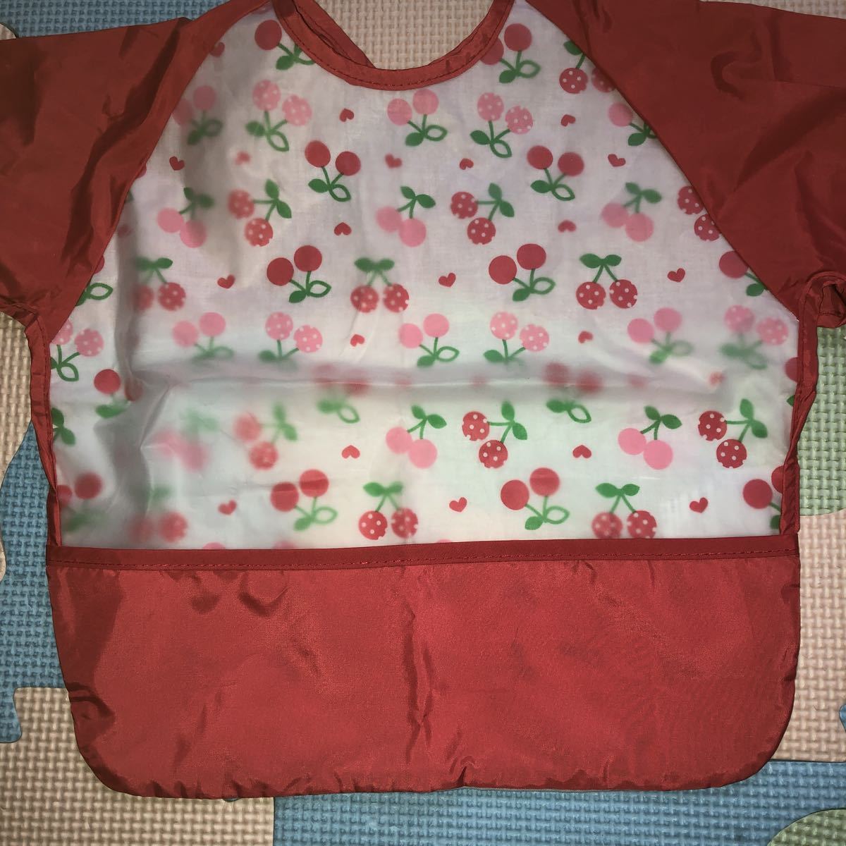 さくらんぼ柄がとっても可愛い女の子用長袖お食事用エプロンです。
