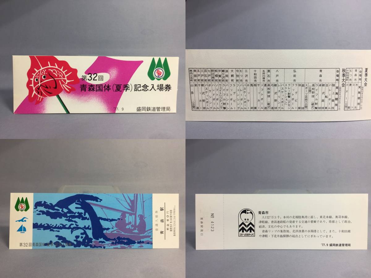 国鉄・盛岡鉄道管理局 昭和52年9月 第32回青森国体(夏季)記念入場券 入場券5枚 【k12-0035】