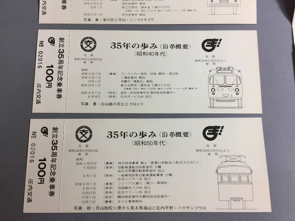 庄内交通 創立35周年記念乗車券 4枚セット 昭和53年 【Y-06-2130】