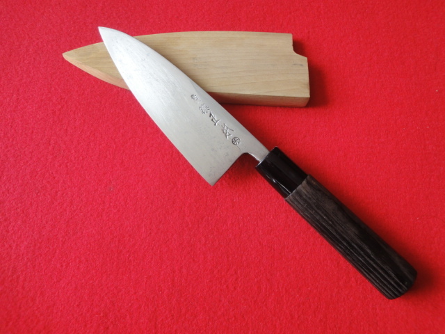 【築地正本】相出刃包丁 刃渡14.9㎝ 全長28.3㎝ 峰厚6.8㎜ ※鞘付 ※片刃 中古品 全国一律送料1100円
