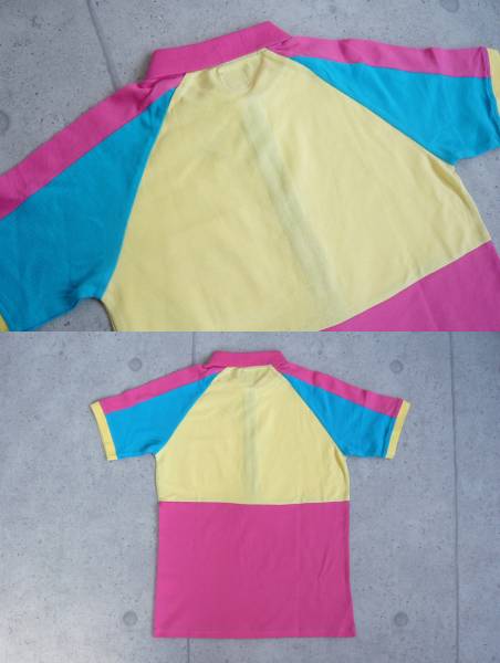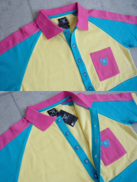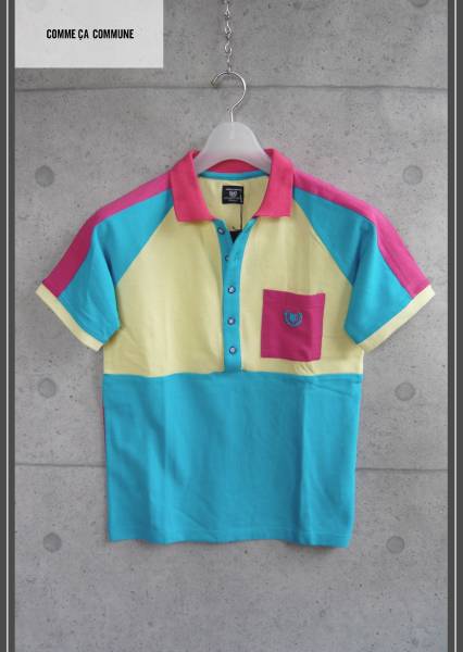 新品コムサコミューン人気トリコポロシャツM青黄桃定価5985円B4