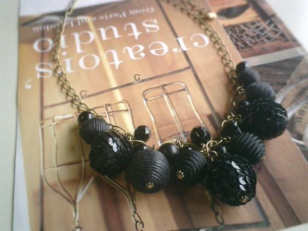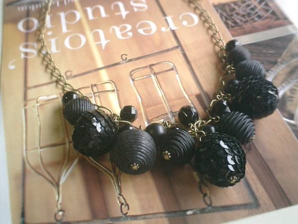 アート・クチュール・・シリーズです♪オニキス・デザイン・・オニキスに黒の異素材を合わせてシックなネックレスです♪6ミリから12ミリ位までの丸玉やラウンドカットのオニキスに12ミリから20ミリ位までのサテンビーズや麻ビーズ、スパンコールビーズなど黒の異素材を合わせました♪カジュアルからフォーマルまで色々なシーンで楽しんでいただけます♪長さは全長72センチ位で調節自由です♪お揃いのブレスレットも出品しています♪♪シンプルで長く着けていただけるデザインを考えて作りました♪ハンドメイドをご理解頂いてノークレーム、ノーリターンでお願いします