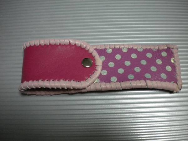 ケース周囲は、ピンクレザーで、かがり仕上げをしています。