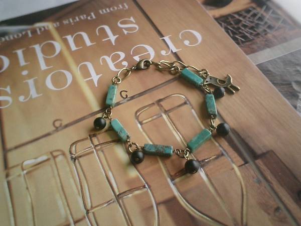 ガールズ・コレクション・・シリーズです♪シックなオニキスとターコイズのブレスレットです♪やさしい黒のマットオニキスは6ミリの丸玉です♪15×4ミリのキューブのターコイズを合わせてシックな表情です♪長さは全長23センチ位で調節自由です♪♪お揃いのネックレスも出品しています♪♪シンプルで飽きのこないいつまでも着けられるデザインを考えて作りました!ハンドメイドをご理解頂いてノークレーム、ノーリターンでお願いします