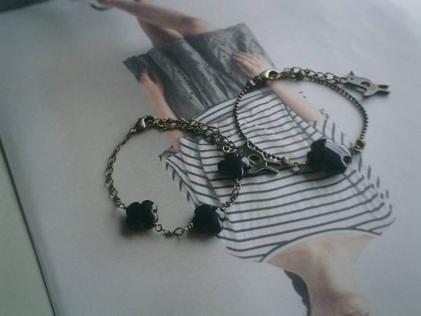 ロゼッタのお気に入り・・シリーズです♪シックな黒のお花・漆黒のオニキスのクロスモチーフのブレスレット2本セットです♪大きさ違いのクロスモチーフを使いました♪丸みを帯びたクロスがお花のように可憐な表情です♪12ミリ位のクロスモチーフはランダムに繋ぎました♪長さは全長23センチ位で調節自由です♪15ミリのクロスモチーフは華奢なボールチェーンを合わせました♪長さは16センチ+アジャスター6センチで最長22センチ位です♪それぞれ単品やお揃いのネックレスやピアスも出品しています♪♪シンプルで飽きのこないいつまでも着けられるデザインを考えて作りました!ハンドメイドをご理解頂いてノークレーム、ノーリターンでお願いします