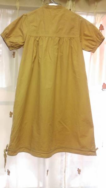 ◆裾を絞るリボン付でバルーンラインにもなるワンピース♪半袖パフスリーブ♪シャリッとした少し張りのある素材の風合いはミリタリー風な質感とふんわりラインの可愛さがミックスした様なオシャレなワンピース