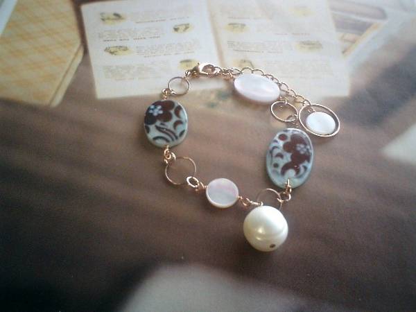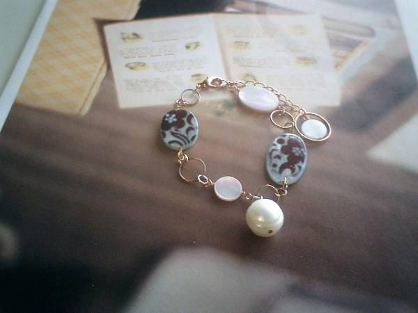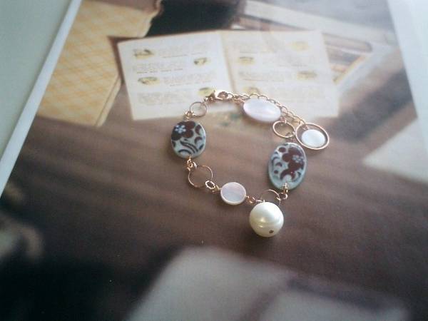 恋愛映画のレシピ・・シリーズです♪小さな貴婦人・・淡水パールとシェルのブレスレットです♪ピンクシェルやお花模様のシェル、などデザイン違いのシェルに淡水パールやピンクゴールドのチェーンを合わせてキュートモダンな表情です♪ピンクシェルは10ミリのコインや16ミリのオーバル、15ミリ×25ミリのオーバルです♪トップは12ミリのポテトの淡水パールです♪長さは全長23センチ位で調節自由です♪♪お揃いのネックレスやピアスも出品しています♪シンプルで飽きのこないいつまでも着けられるデザインを考えて作りました!ハンドメイドをご理解頂いてノークレーム、ノーリターンでお願いします